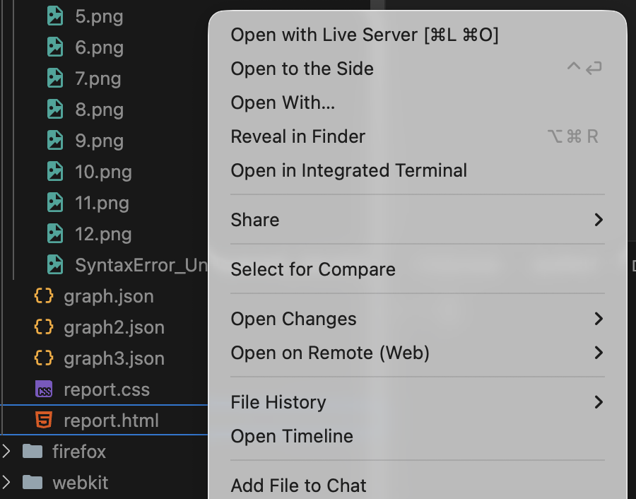 En VSCode descargar la extensión Live Server y en cada uno de los archivos report.html dar clic derecho y seleccionar la opción "Open with Live Server", automáticamente se abrirá el navegador por defecto y se mostrará los resultados obtenidos.