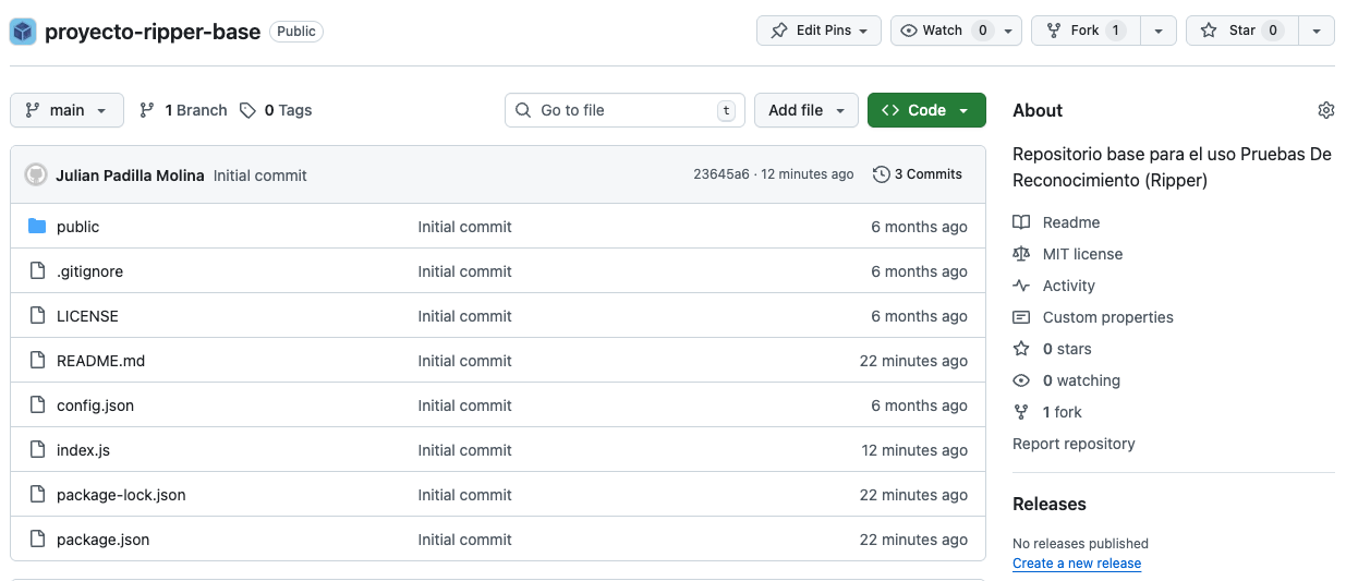 En primer lugar, para usar la herramienta RIPuppet, es necesario obtener el código fuente en su máquina local. Dicho código fuente se encuentra alojado en el repositorio de GitHub del siguiente enlace: https://github.com/Uniandes-MISW4103/proyecto-ripper-base.