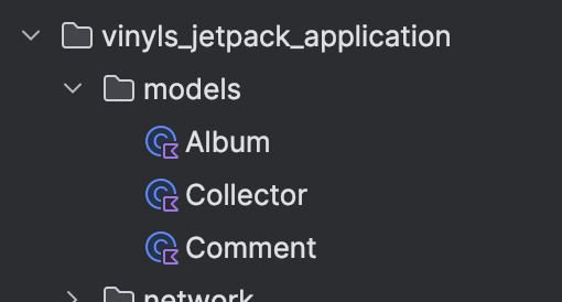 Luego de validar los datos que se necesitan, proceda a crear tres clases: una con el nombre Album, una con el nombre Collector y otra con el nombre Comment, haciendo clic derecho sobre el directorio models en Android Studio y seleccionando la opción New > Kotlin File/Class. En el caso de la clase Album, este debe ser el contenido: